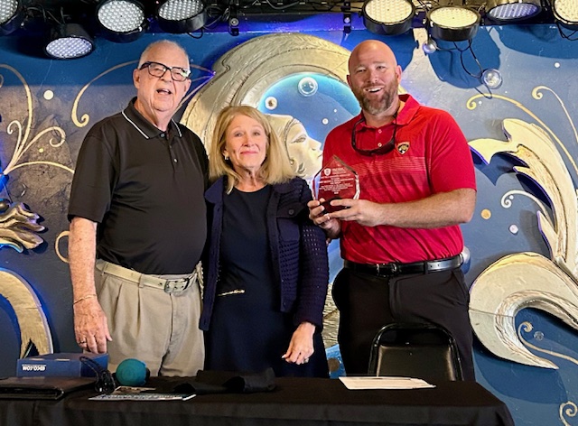 Fred Nesbitt, president of the Galt Mile Community Association, presented a special recognition award to Nancy Seltzer and Justin Bartholomew of S&B Realty. They were