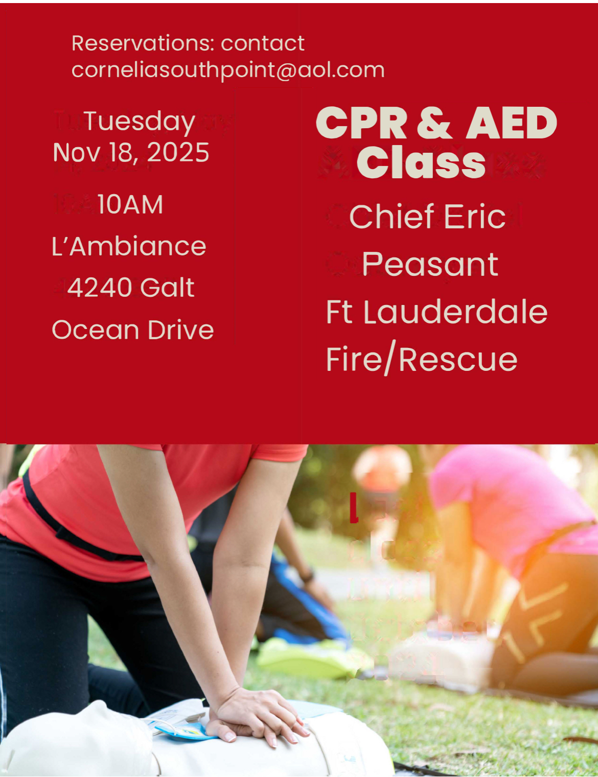 The Galt Mile and Fort Lauderdale Fire Rescue are sponsoring a one-hour training session in CPR and AED techniques. It is important to have this